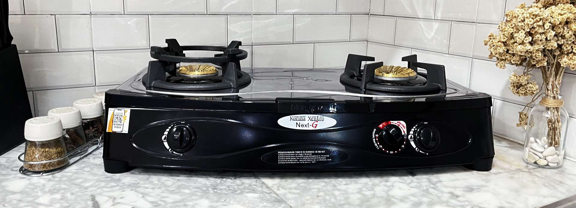 Kompor 2 tungku yang memiliki permukaanbagian atas berbahan stainless steel, lebih kuat dan tahan karat, sangat cocok untuk anda yang memiliki aktivitas masak tinggi dan masak berat, dengan api biru yang cepat panas sehingga membuat masakan matang merata.
