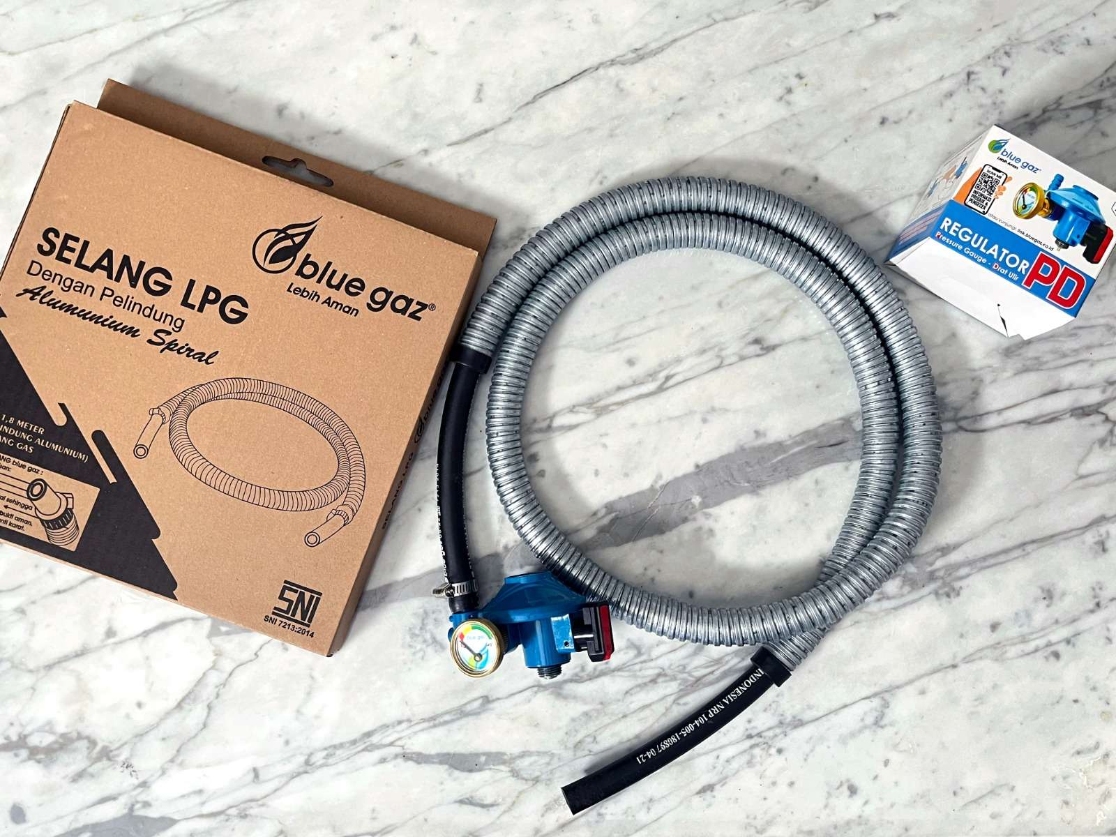 Selang blue gaz sangat cocok untuk penggunaan masak sehari-hari, sangat kuat dan tahan terhadap panas, dilapisi alumunium spiral membuat selang blue gaz bebas gigitan tikus dan mudah untuk membersihkan selang blue gaz dari percikan minyak sisa proses memasak
